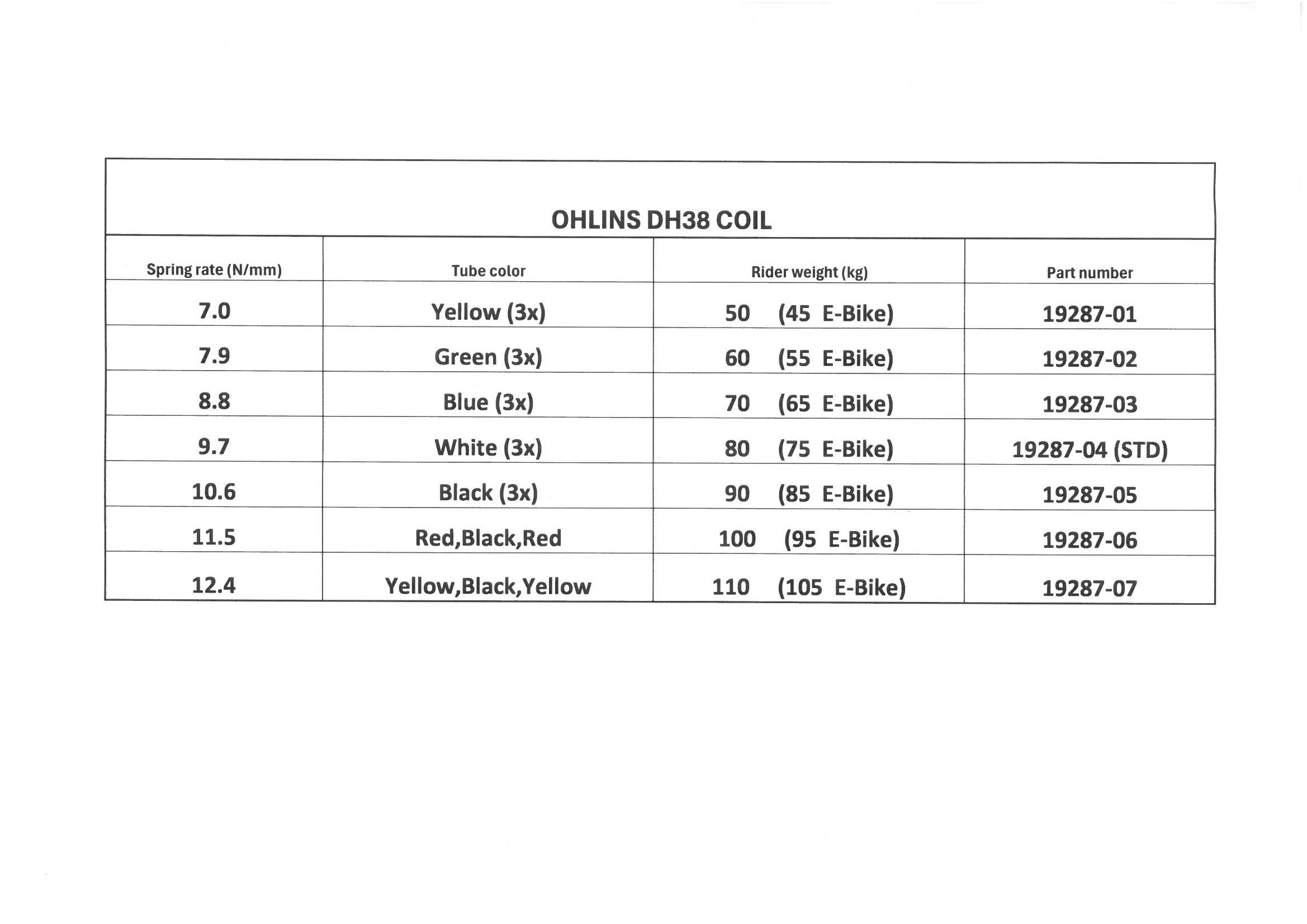Fork spring DH38 m1 9.7 N/mm