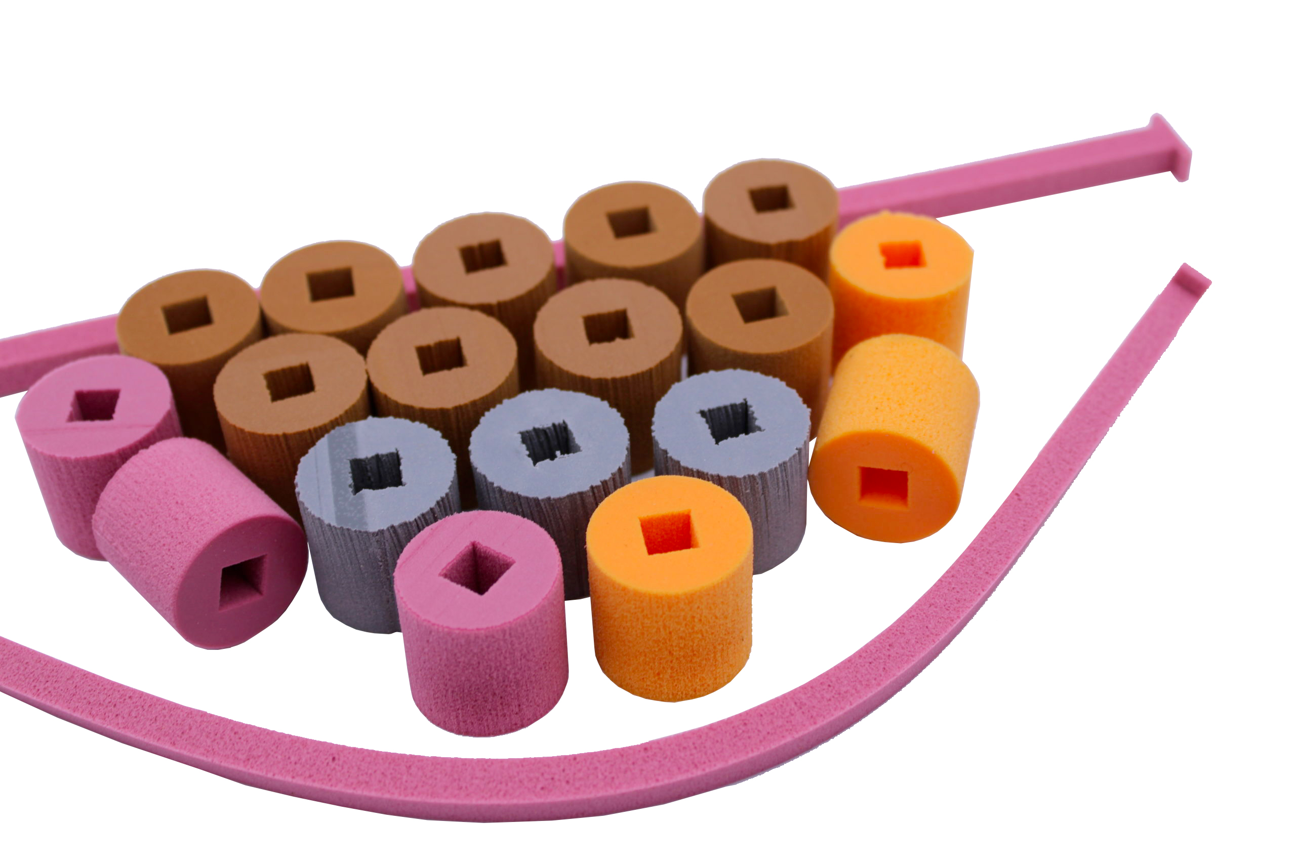 The elastic elements needs to be inserted inside the positive chamber (on air forks) or inside the spring (on spring coiled forks). It is very important to sprinkle them with specific grease that permits an high level of lubrication of the system. The consistency given by the polymers permits to use a less inflating pressure of the fork positive chamber (on air forks) or to use a spring with less elastic constant (on spring coiled forks) maintaining same forces as static level (see graph)