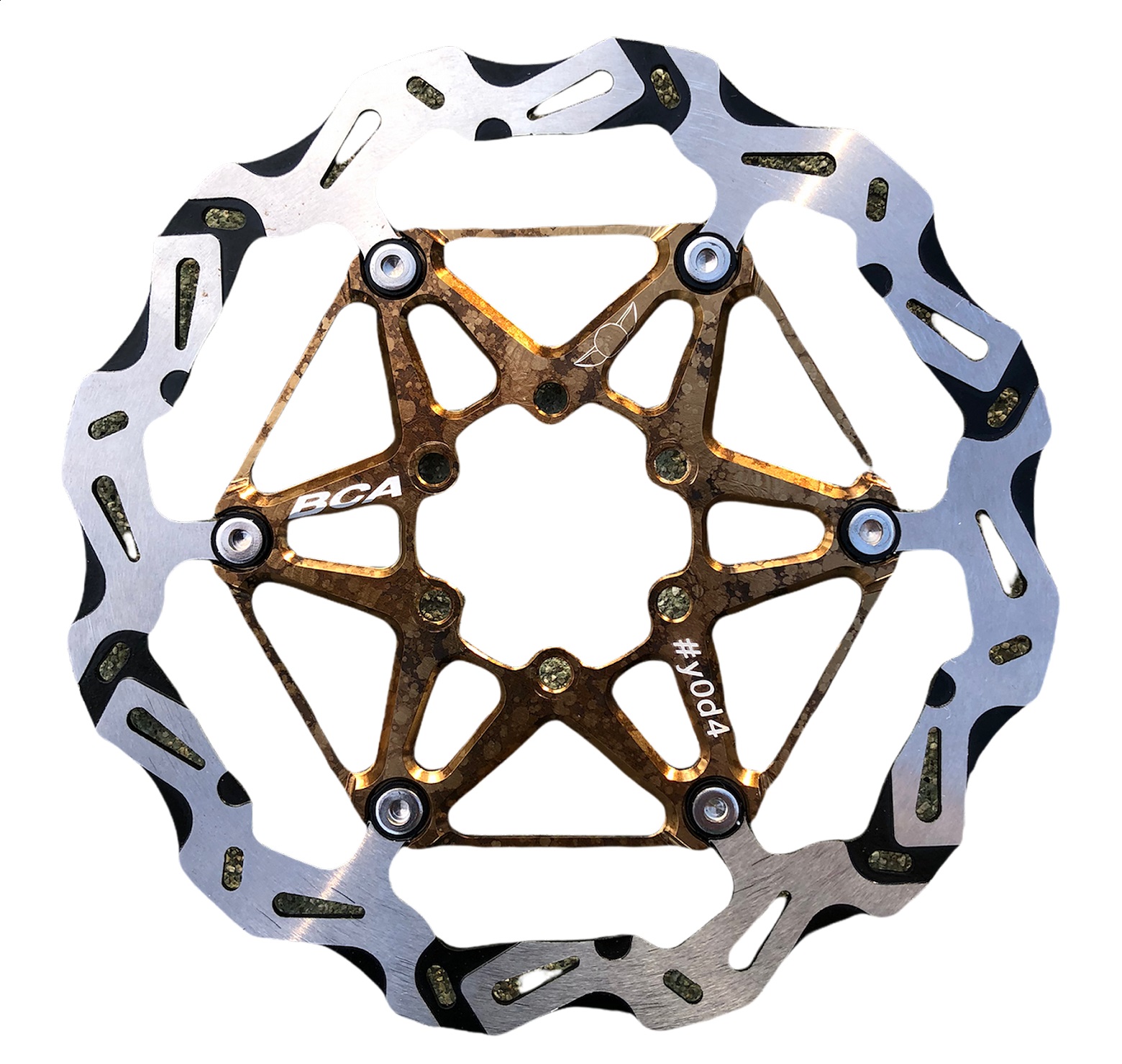 Sono composti da due pezzi non flottanti e dunque più leggeri rispetto ai mono blocco, lo spider in ergal ancorato alla pista riduce le vibrazioni trasmesse a pastiglie/pistoni, le scalanature e le alette presenti sulla pista frenante dissipano il calore agevolando il raffreddamento del disco.